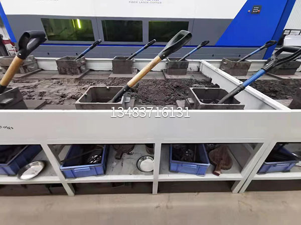 (1)搗砂錘,又稱砂沖子、砂舂,用來舂實鑄型,它的頭部分為扁頭和平頭兩種,分別鑄接在鐵棍的兩端,扁頭用來舂實模樣周圍及砂箱靠邊處或狹窄處的型砂,平頭用以舂平砂型表面。