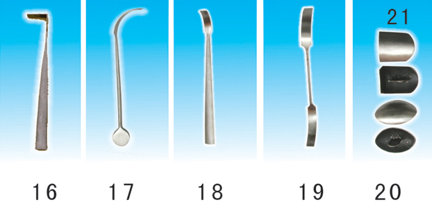 15、雙頭鋼批 16、鋼批提勾 17、榔頭鏟 18、鋼枇耙 19、萬能勾 20、蛋圓光子 21、直角光子