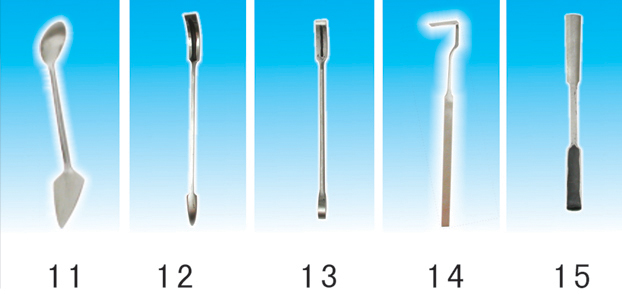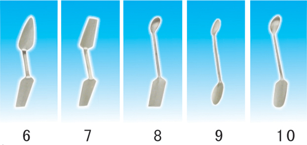 1、方刮刀 2、尖刮刀 3、提勾 4、竹片梗 5、標準壓勺 6、單齊壓勺 7、雙齊壓勺